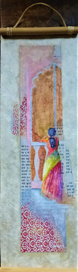 ![]() Huile et collages papier sur carton 15 x 45 | ![]() Coucher de Soleil à PushkarHuile et collages papier sur carton 42 x 32 |